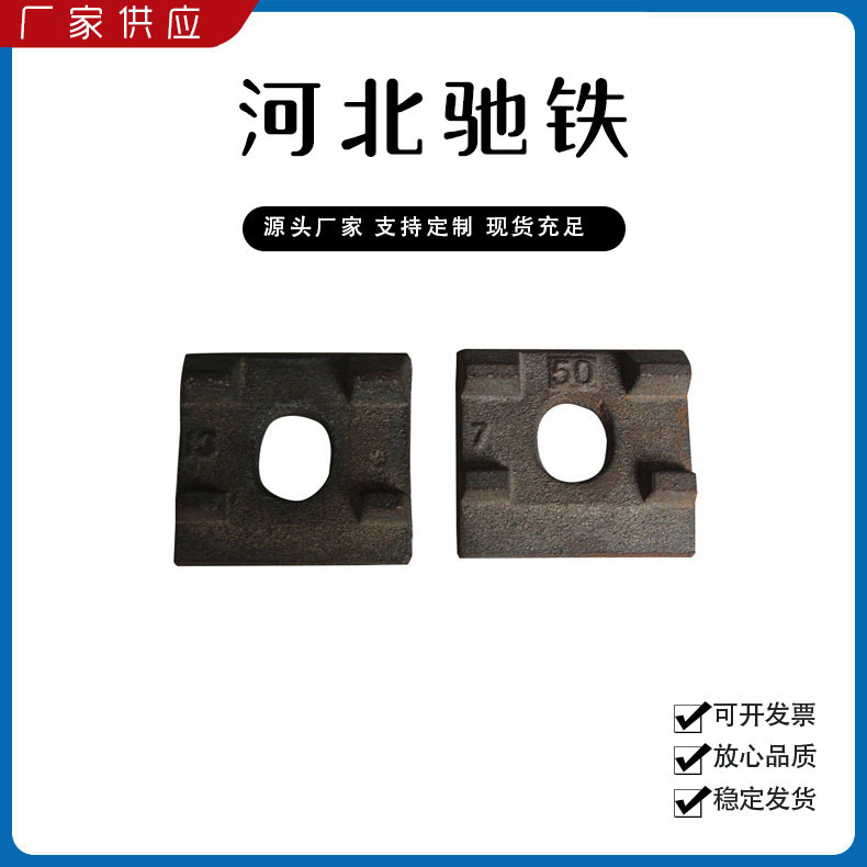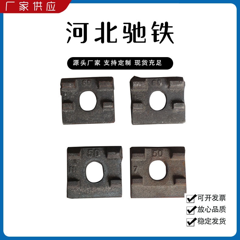 主要產(chǎn)品:鐵路配件、行車(chē)配件、工礦配件、魚(yú)尾板、道釘、壓軌器、軌道壓板、軌距拉桿、護(hù)軌扣板、T型螺栓、魚(yú)尾螺栓、彈條、軌距擋板
